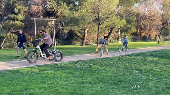 The Treefort Standard CineTrike is an electric rickshaw perfect for dynamic camera movement, reaching a top speed of 15.5 MPH. Including a rear cheeseplate and removable seat, the Treefort Standard Cine Trike offers a wide variety of rigging options. Whether used for handheld, Steadicam, or hard-mounted rigs, it provides a stable platform for capturing energetic tracking shots without the footprint of a full-sized vehicle.